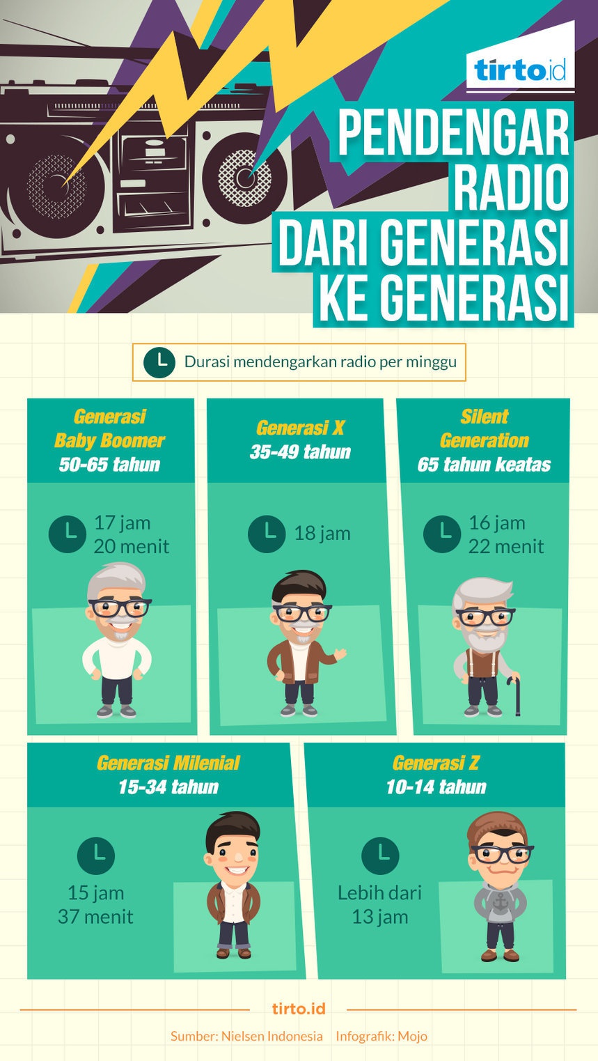 sobat senja! Diatas kami bagikan infografis dari tirto.id mengenai pendengar radio